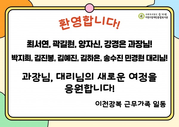 앞으로도 이천시장애인종합복지관은 양질의 교육을 할 수 있도록 노력하겠습니다.
